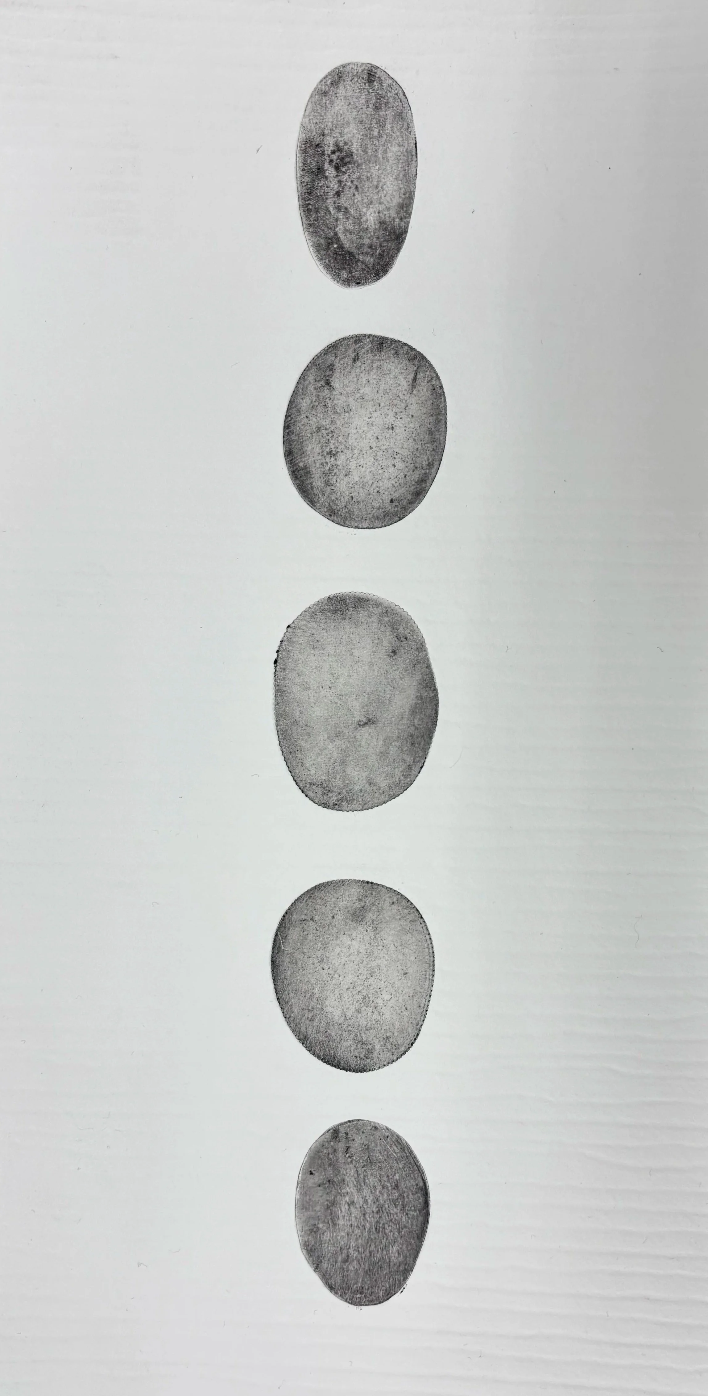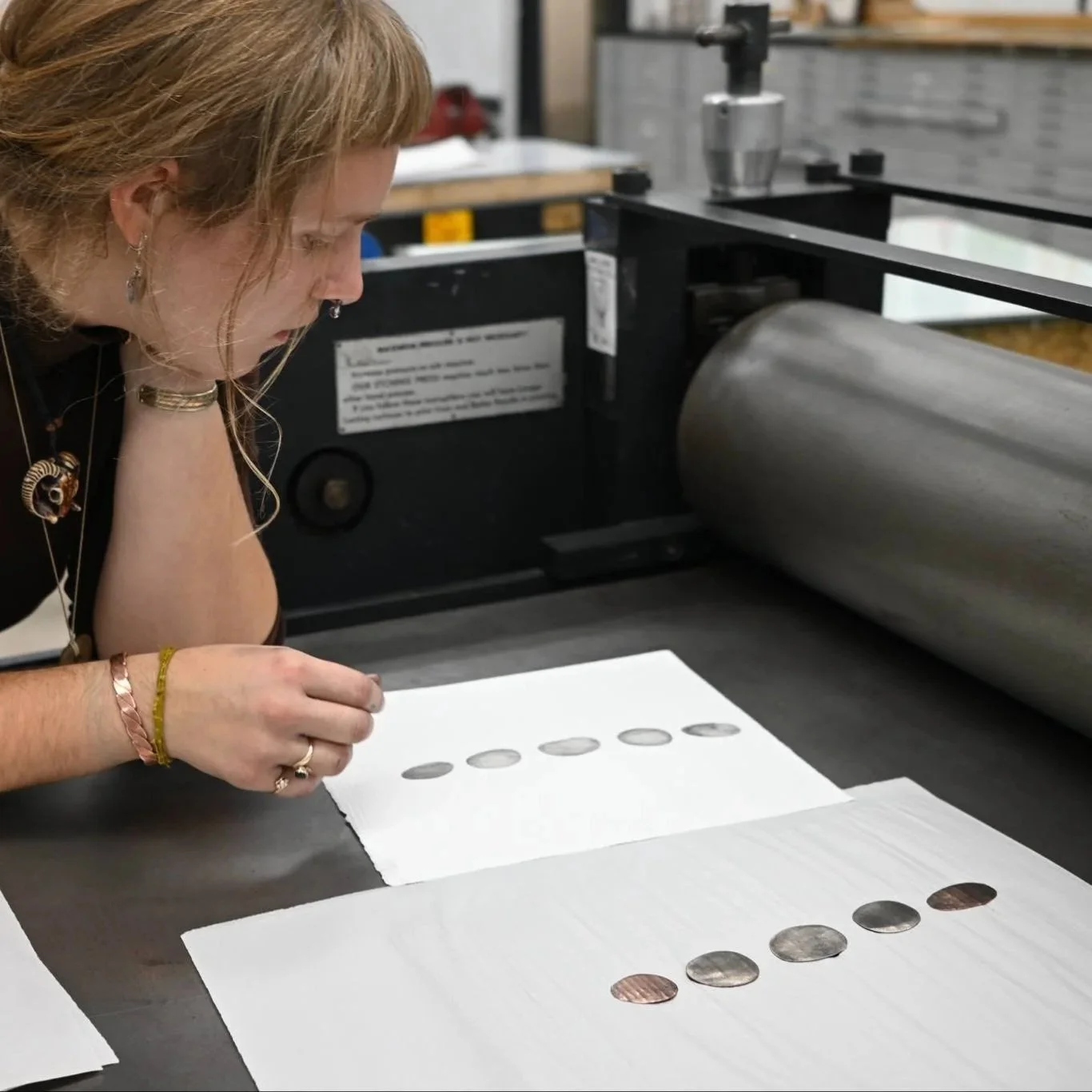"Coin Impressions," flattened coin intaglio, 2.5"x3", 2025.
